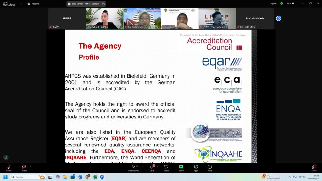 Sosialisasi Akreditasi Internasional ASIIN dan AHPGS, Dorong Mutu Pendidikan Tinggi Unhas Senin, 28 April 2025 | Update Berita Lembaga Penjaminan Mutu dan Pengembangan Pendidikan (LPMPP) Universitas Hasanuddin menggelar kegiatan “Sosialisasi Akreditasi Internasional ASIIN dan AHPGS” secara daring melalui aplikasi Zoom. Kegiatan ini diikuti oleh 90 peserta yang terdiri dari para Dekan, Wakil Dekan, Ketua Program […]